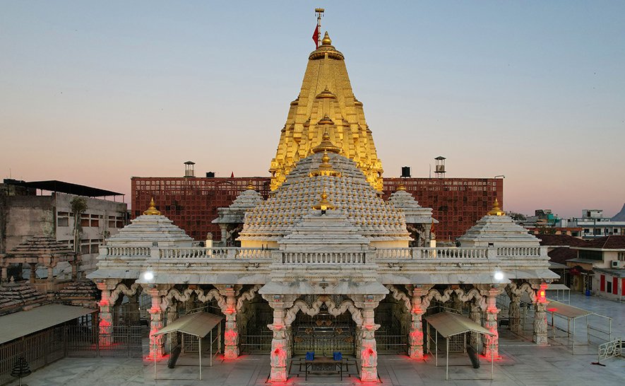 Ambaji Mandir, dedicated to Ambe Mata — the Mother Goddess — is one of the most popular religious destinations for Hindu devotees. The worship of this Goddess is believed to date back to the Pre-Vedic era. Since the temple is located on the Aravalli hills, the Goddess is known as Arasur ni Ambe Maa. It is recognized as one of the most significant Shakti Peethas in India, and the people living in the region chant the name of Ambaji as a sacred mantra. Devotees believe that Ambaji is the supreme divine power who governs the entire universe.